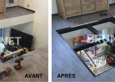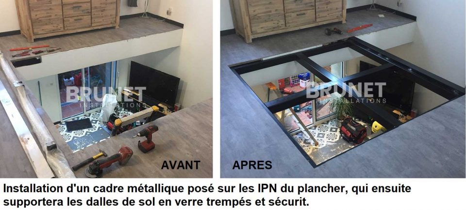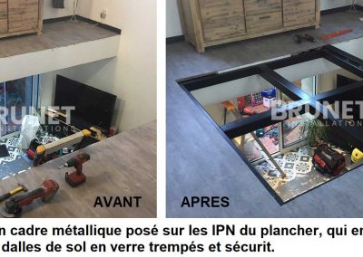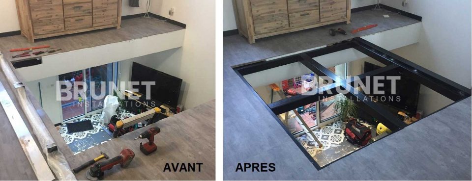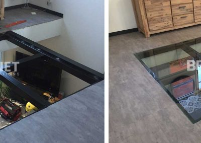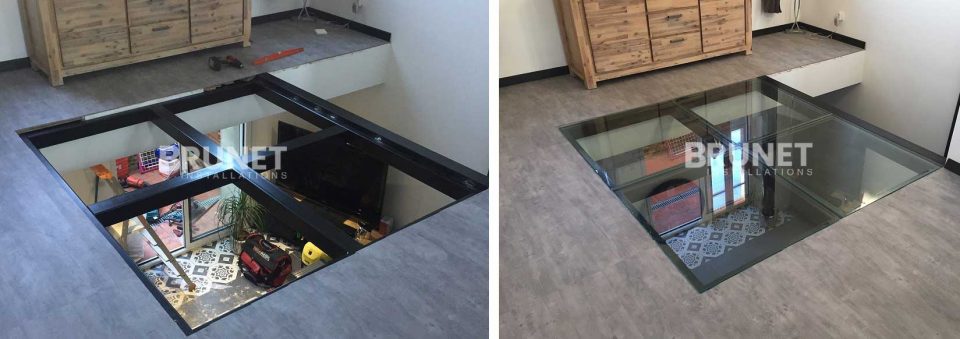 Installation d'un plancher de verre entre un rez de chaussée et un 1er étage : c'est magnifique ! Nous sommes ravis du résultat et du travail rapide, sérieux et soigneux de Mr Brunet et de son collègue. Nous recommandons chaleureusement. Et devis moins cher que chez la concurrence.